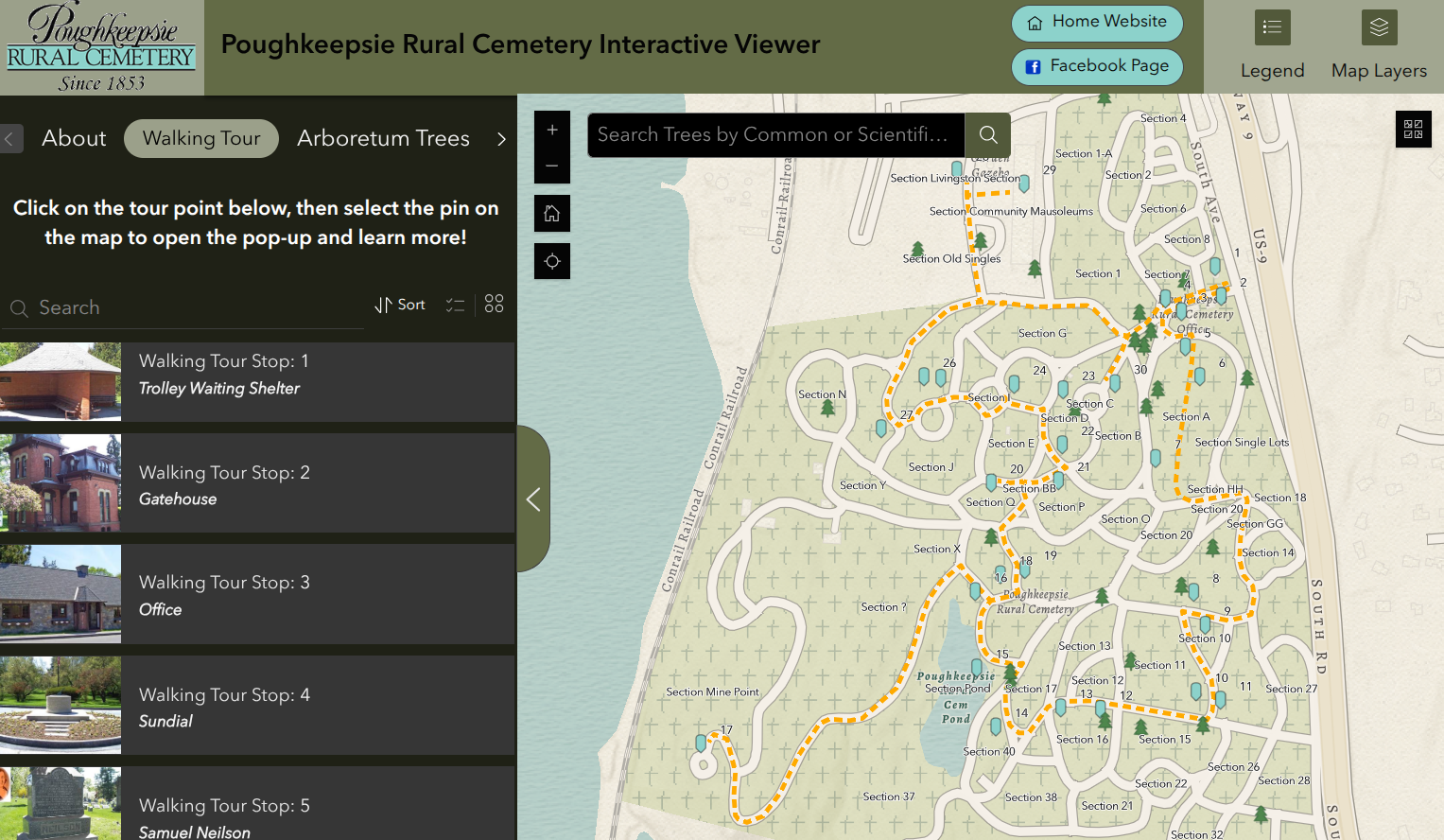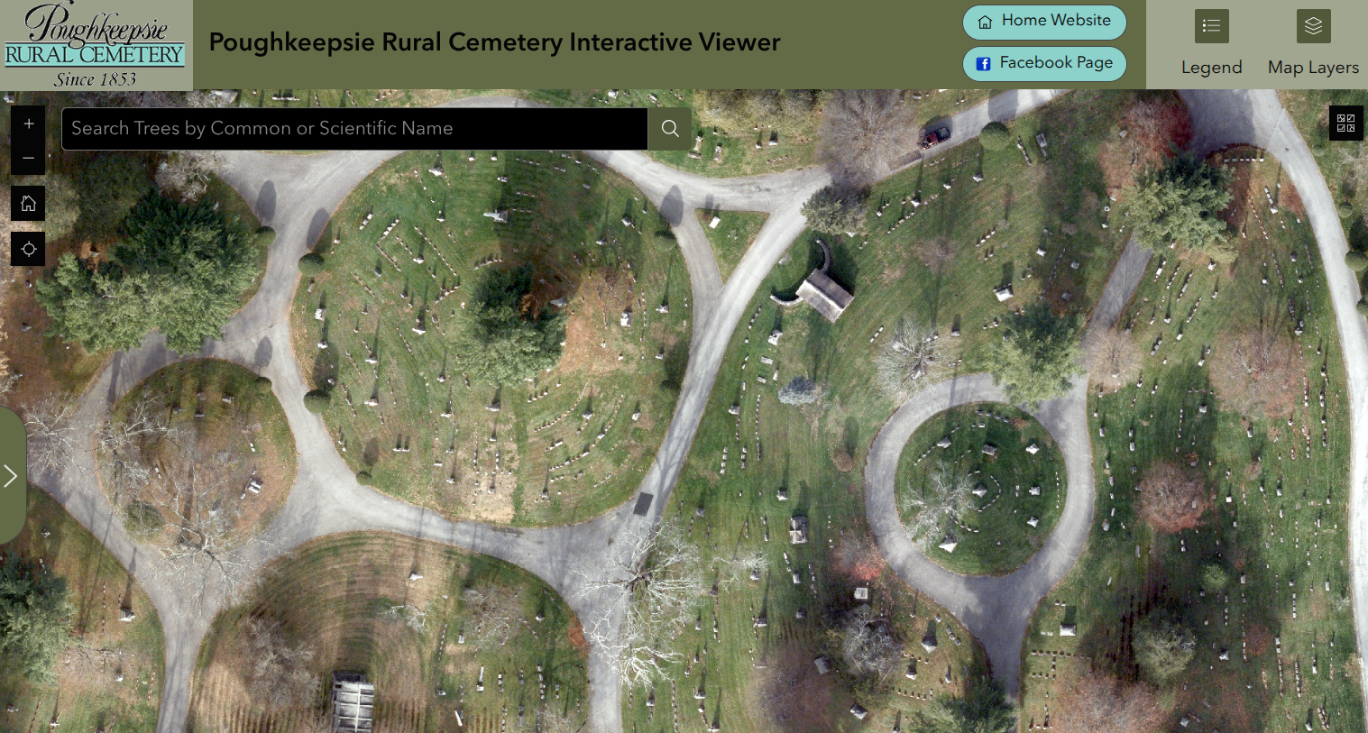 The viewer enables users to take an online walking tour of the cemetery as well as access to a comprehensive tree inventory
